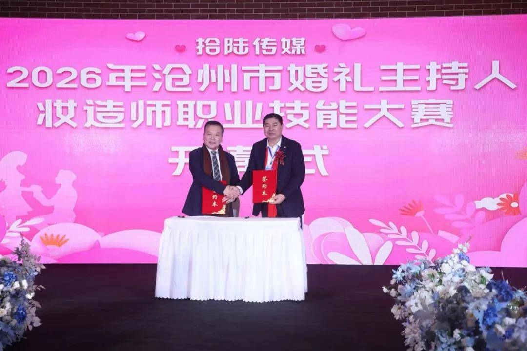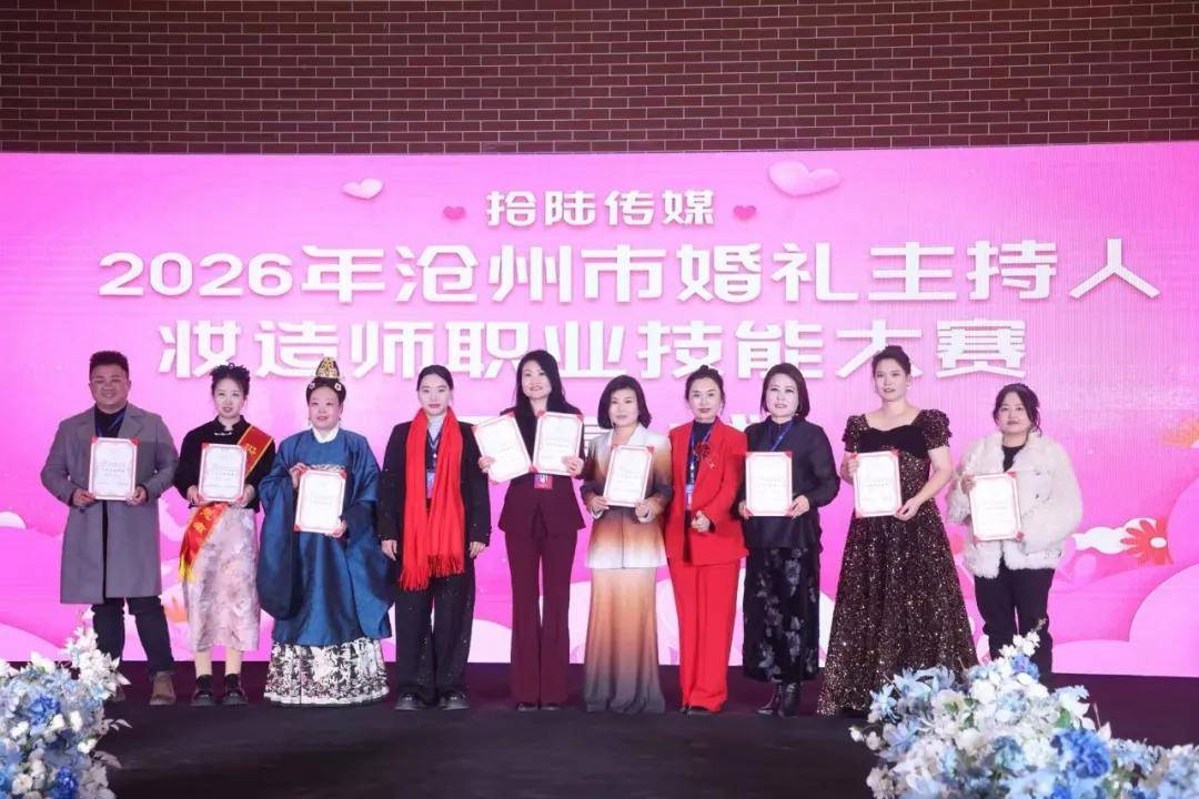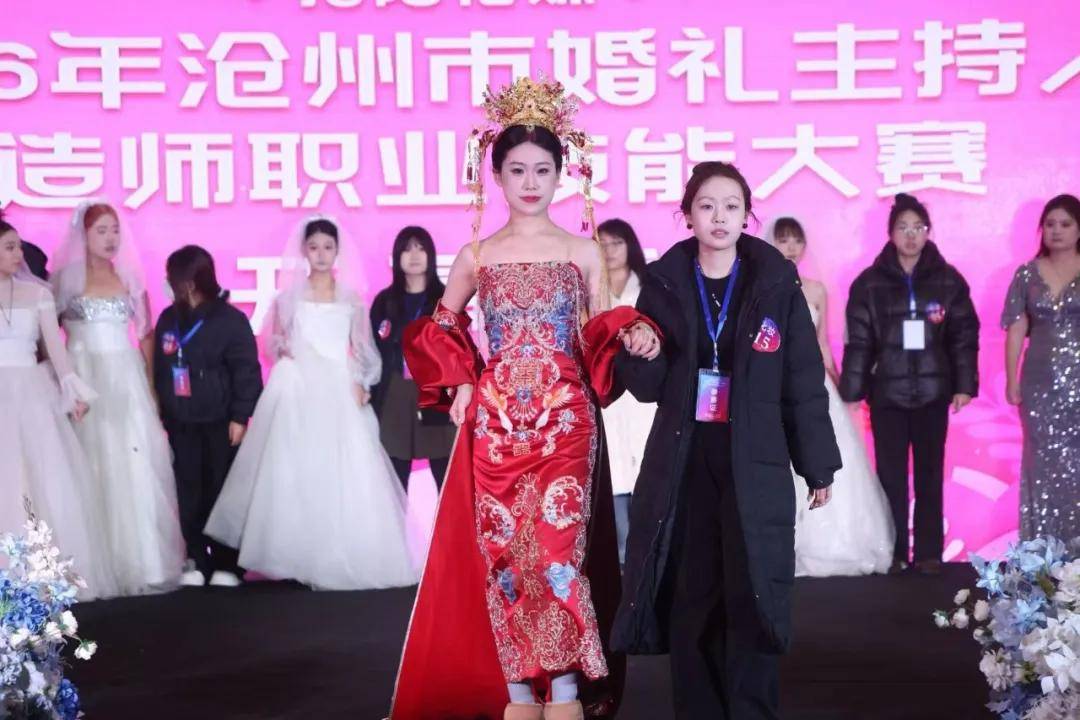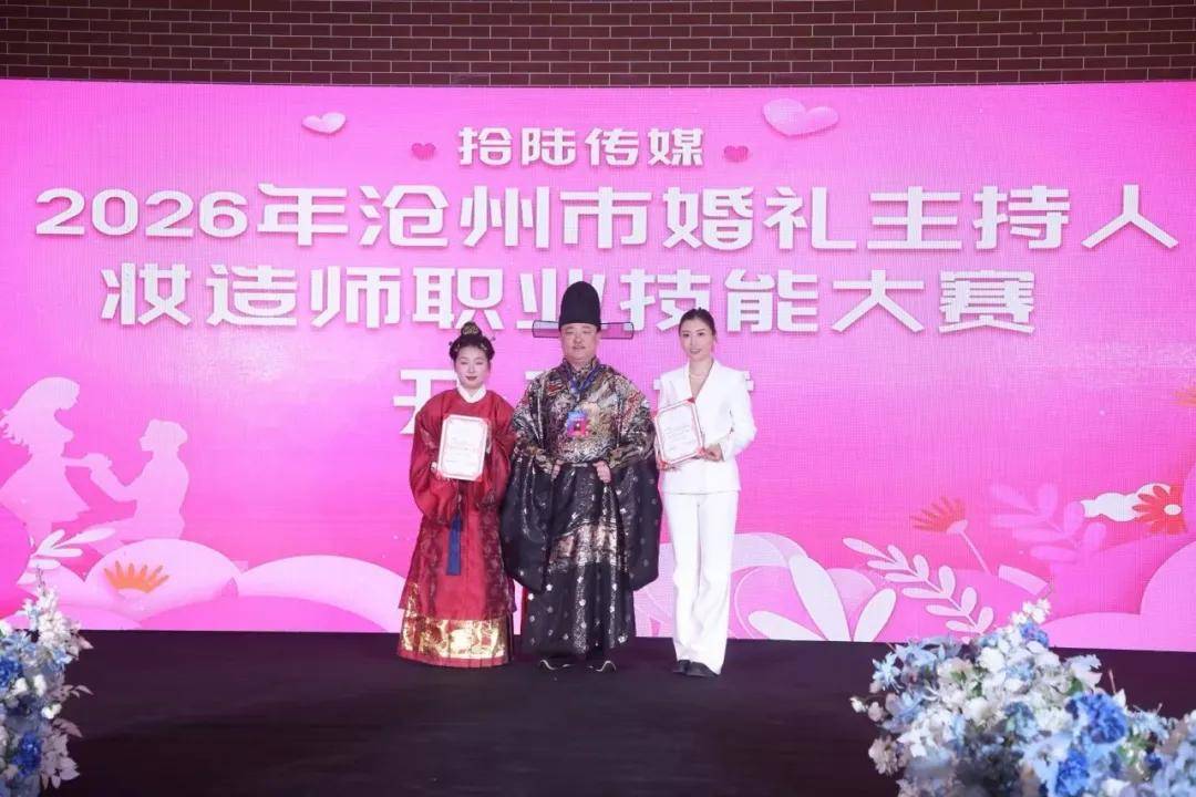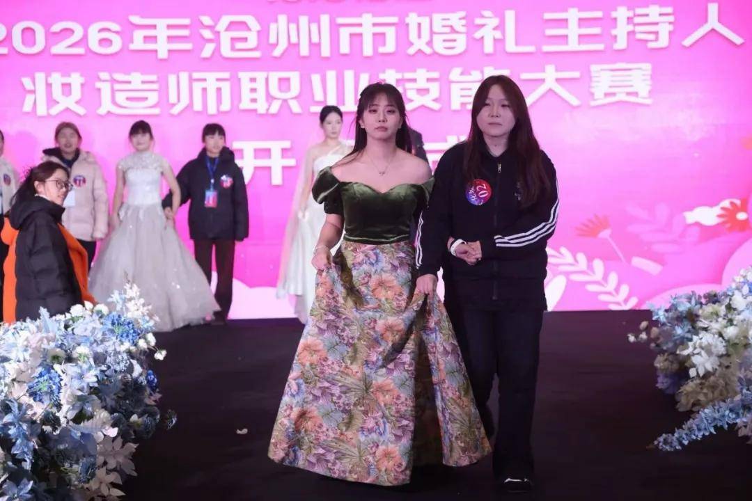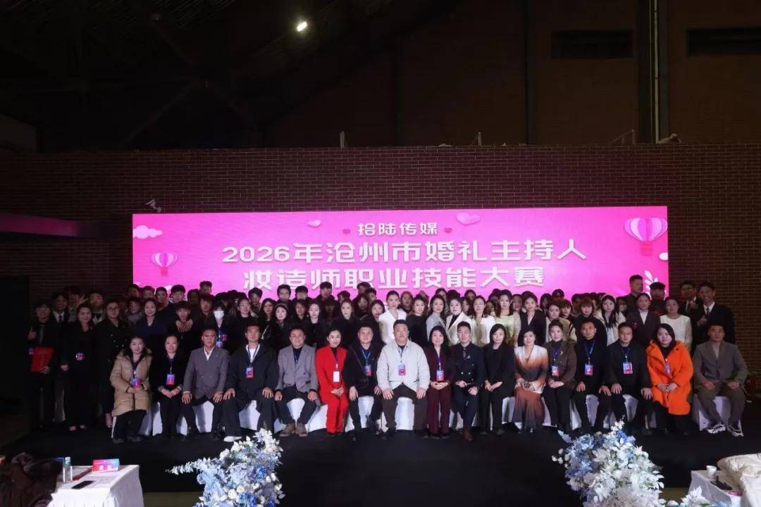 2026年1月1日,为大力提升全市婚庆美容美发行业从业人员素质,加强婚庆美容美发行业行业人才建设,更多地发现和造就婚庆美容美发行业行业高技能人才,推动全市婚庆美容美发行业健康有序发展,由沧州市婚姻服务行业协会、沧州市美发美容行业协会主办,沧州市蓝天职业培训学校、沧州市艾慕婚纱、喜事彤行婚礼服务团队、国韵礼部中国传统文化研习社、远东婚礼堂东泰大酒店联合协办,沧州市拾陆文化传媒有限公司赞助支持的2026年沧州市婚礼主持人&妆造师职业技能大赛在沧州大化会展中心圆满落幕!沧州市婚姻服务行业协会会长李福友、沧州市美发美容行业协会会长孙嫱、沧州市美发美容行业协会秘书长张法兴、国内知名导演田燕农、韩国国际美容产业交流协会会长金贤哲、沧州市蓝天职业培训学校校长范孙洁等领导嘉宾、参赛选手、评审团、工作人员近300人出席大赛开幕式。