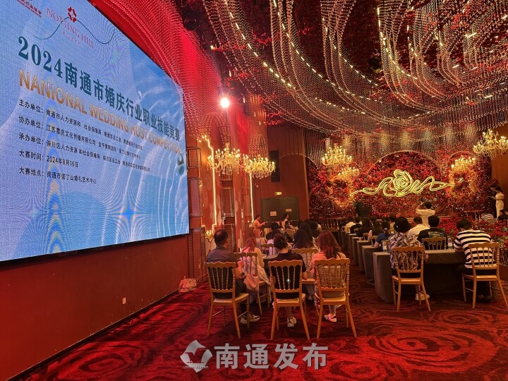 2024年8月16日,2024南通婚庆行业职业技能竞赛在诺丁山婚礼艺术中心(南通店)举行,来自各县(市、区)的70多名婚礼从业人员参赛,通过手中的话筒和化妆工具,展示自己的职业技能和工作风采。