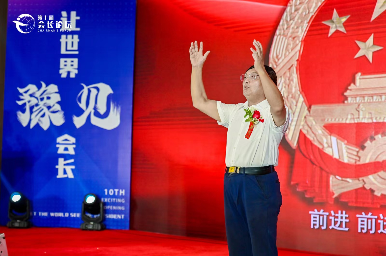 论坛第一项同唱国歌,与会嘉宾全体肃立,由河南省川渝商会党委书记王开凡指挥,现场歌声洪亮、气势恢宏。