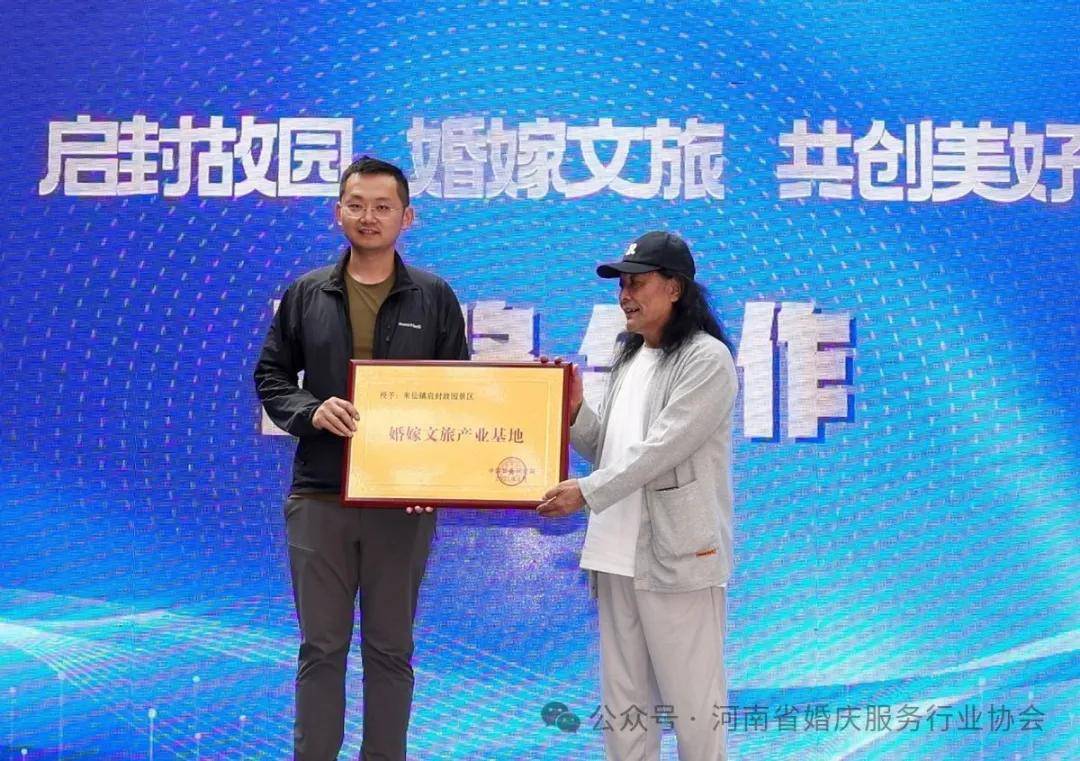 2025年4月22日,刘秉季先生亲自授予朱仙镇启封故园景区为《婚嫁文旅产业基地》,这一荣誉的获得,再次证明了启封故园在文化旅游领域的创新和突破。景区总裁叶耀方先生在接收这一荣誉时表示,启封故园将继续坚持以文化为魂、以旅游为体的发展理念,不断丰富和完善景区的文化内涵和旅游产品,为游客提供更加优质、独特的旅游体验。