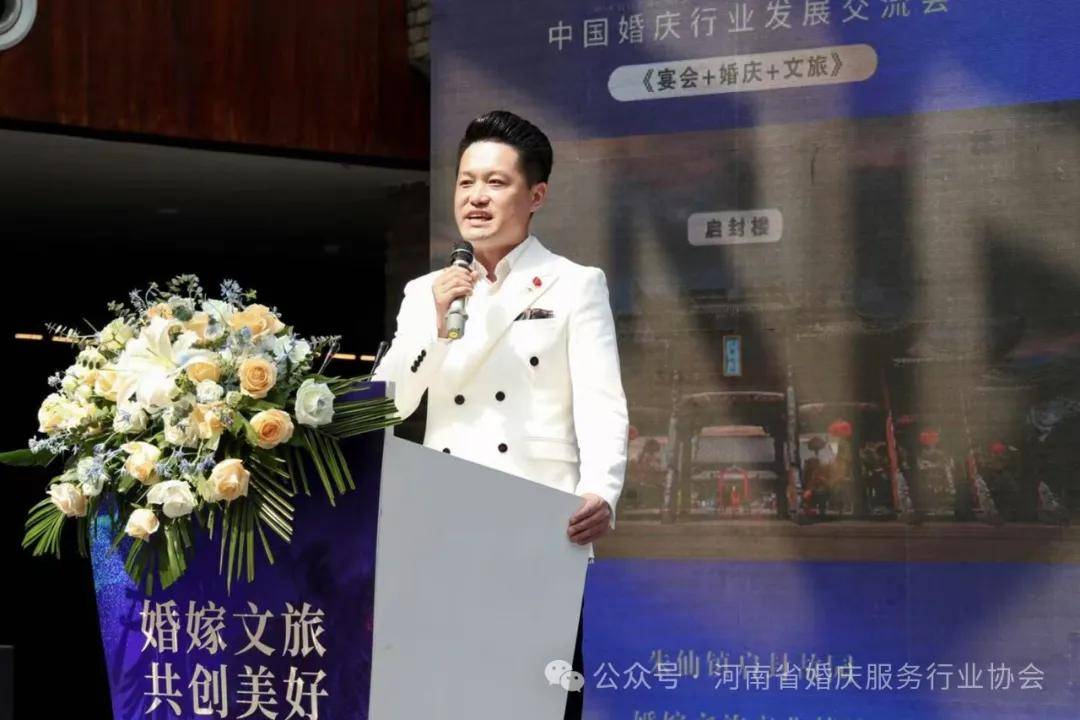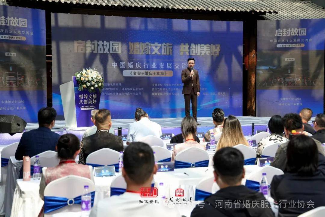 开幕式上,朱仙镇文化旅游股份有限公司党支部书记、启封故园景区总经理刘维辰致辞,向来自全国各地的行业精英表示热烈欢迎。景区将致力于将传统文化与现代婚庆需求相结合,打造全国领先的婚嫁产业基地,为新人提供独一无二的婚礼体验,同时为婚庆行业发展注入全新活力。