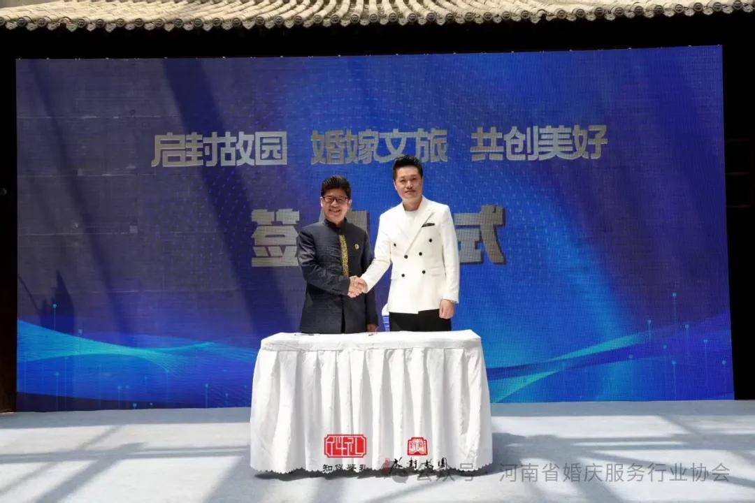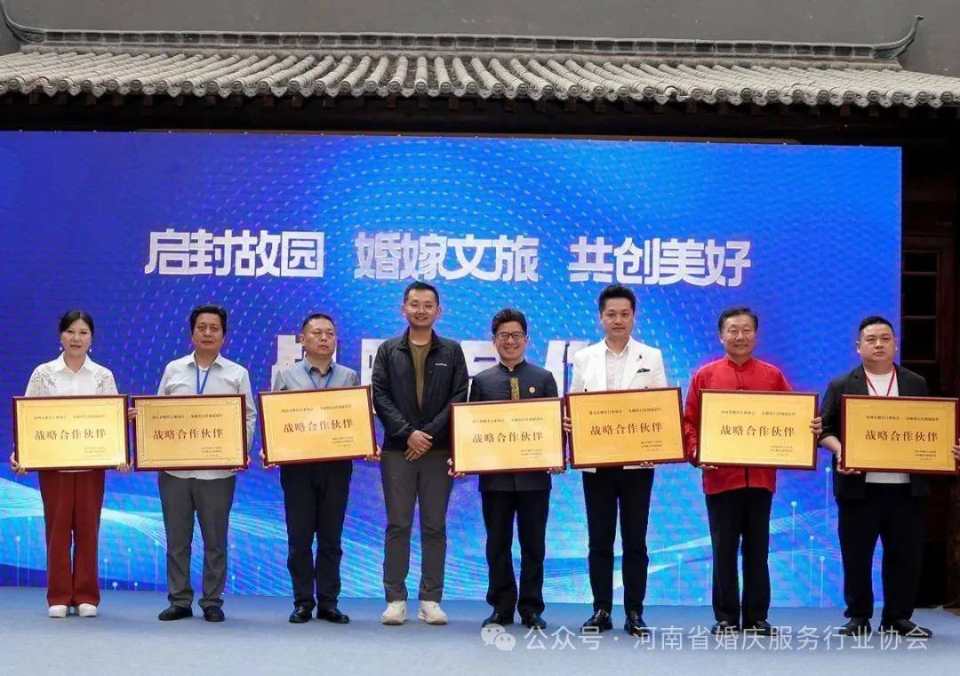 河南省婚庆服务行业协会、浙江省婚庆行业协会、徐州市婚庆行业协会、遵义市婚庆行业协会、洛阳市婚庆协会、濮阳市婚庆协会、新乡市礼仪文化研究会、鹤壁市婚庆协会等齐聚一堂,共同与启封故园景区签署了战略合作协议,携手推动婚嫁文旅产业的蓬勃发展。