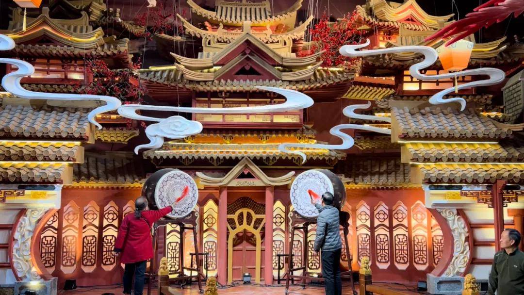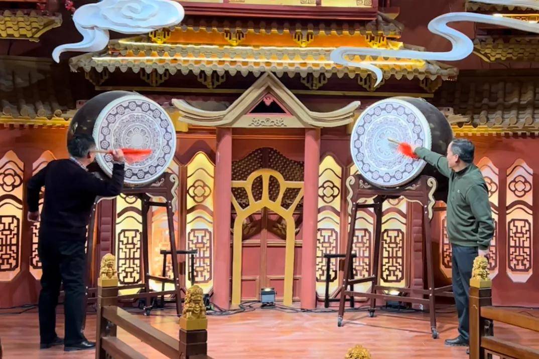随后由协会副会长、苏恩定制婚纱礼服董事长杨双河,副会长、花嫁盛典影楼董事长秦刚击鼓。