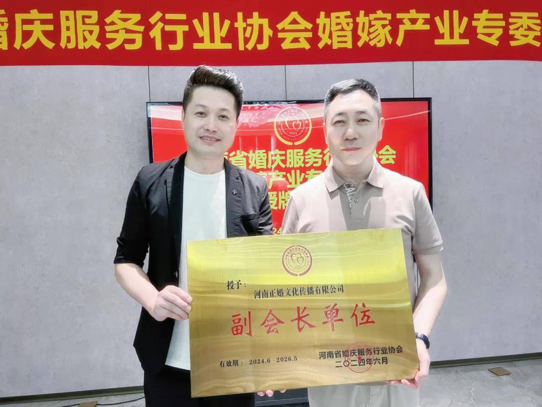 随后,陈平恒会长为正婚集团和婚嫁产业专委会授牌,并热烈祝贺张冬勇董事长重新出任协会副会长、出任协会婚嫁产业专委会主席。