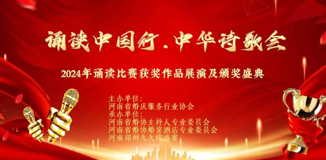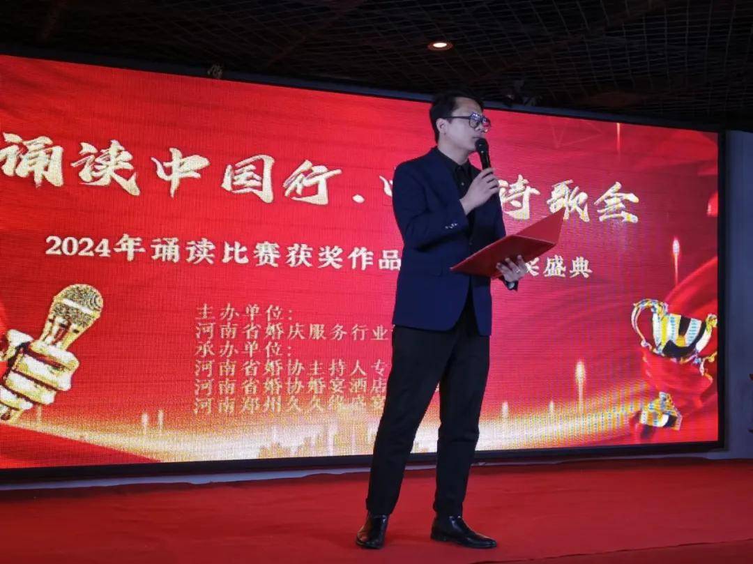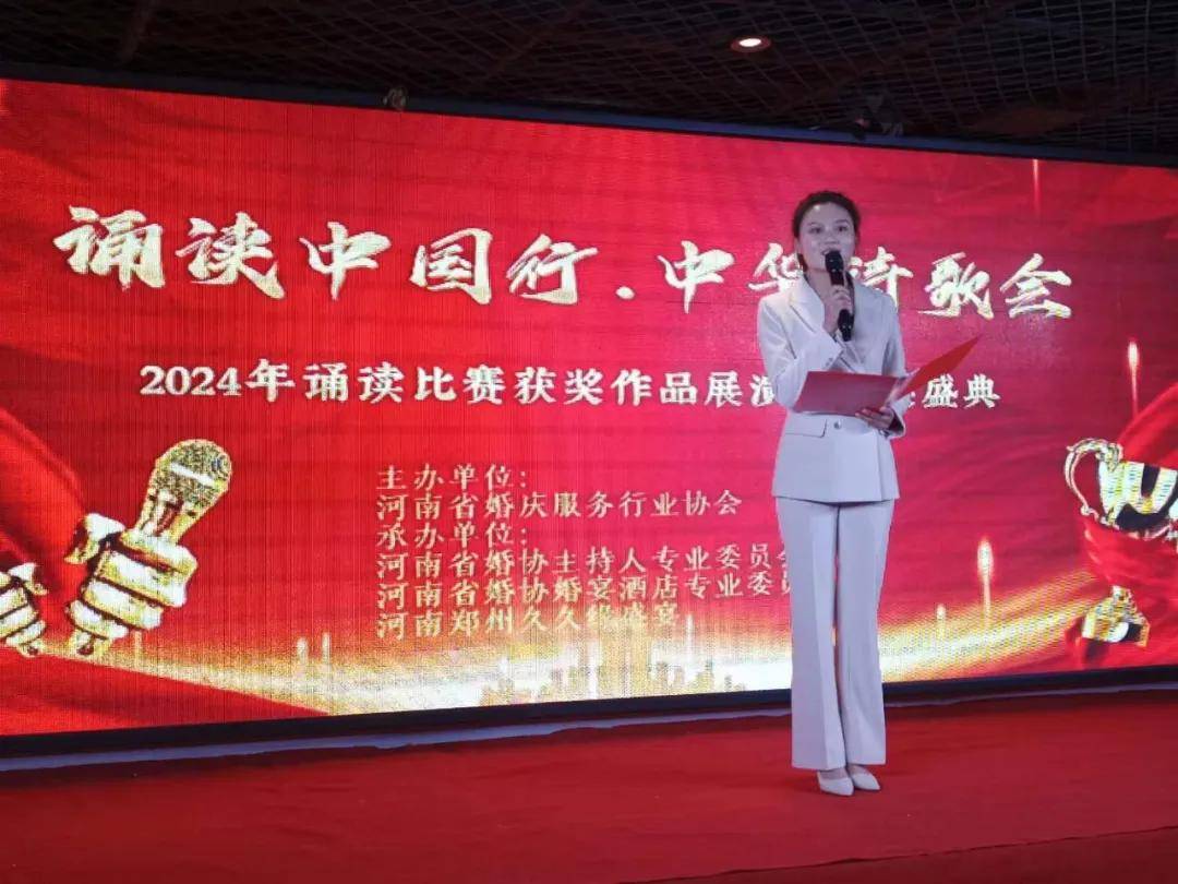 2024年4月14日下午,由河南省婚庆服务行业协会主办,省婚协主持人专委会、婚宴酒店专委会、久久缘盛宴酒店联合承办的《2024年诵读比赛获奖作品展演及颁奖盛典》在郑州举行。