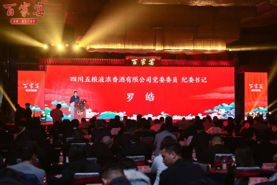 12月28日下午,河南省婚庆协会2023年会圆满结束后,全体与会代表转场至中原厅,参加由五粮液酒厂主办的百家宴品牌焕新发布会。