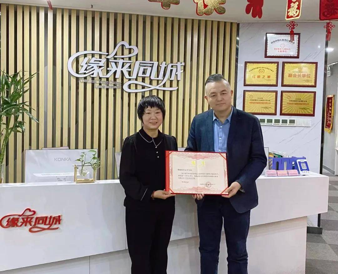 闫肃董事长为李志平会长颁发了公司 “终身荣誉红娘” 聘书,邀请李会长常来公司讲课,以带动公司员工和红娘的爱心慈善公益活动。