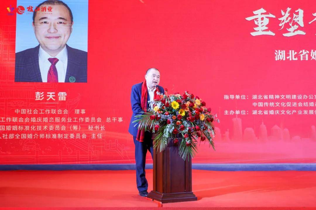 中国社会工作联合会婚庆婚恋服务业工作委员会总干事、人社部全国婚介师标准制定委员会主任彭天雷,中国传统文化促进会结婚产业工作委员会主任曹仲华出席会议并分别发表了热情洋溢的致辞和祝福。
