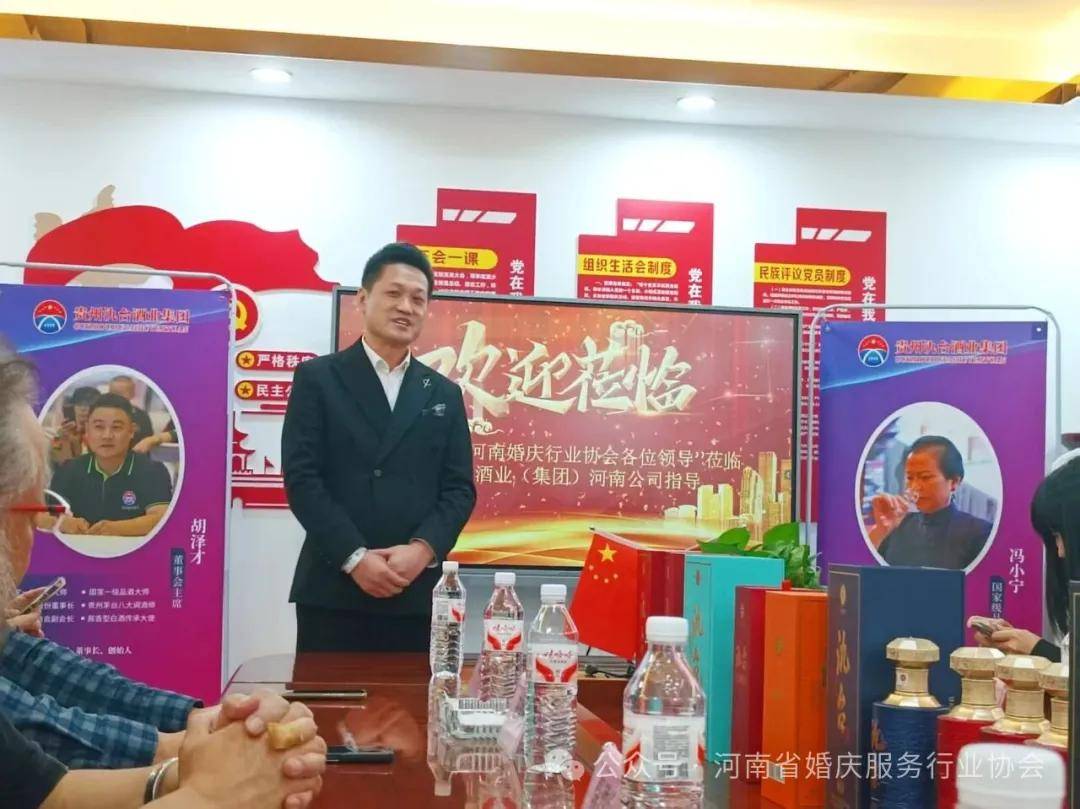 协会党支部书记、会长陈平恒热烈欢迎氿台酒业走进中原并加入协会大家庭,婚协愿助力氿台酱酒走进河南十八地市的喜宴市场。