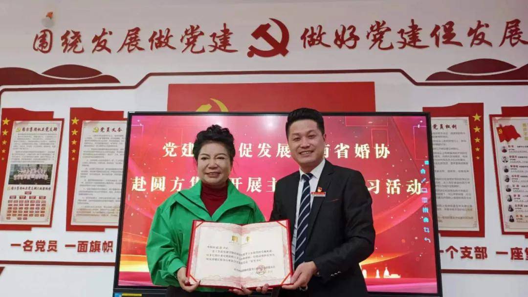 为了高屋建瓴的抓好党建,党支部书记陈平恒为薛书记颁发了聘书,隆重聘请薛荣书记担任中共河南省婚庆服务行业协会支部委员会荣誉书记,全面指导我会的党建工作。