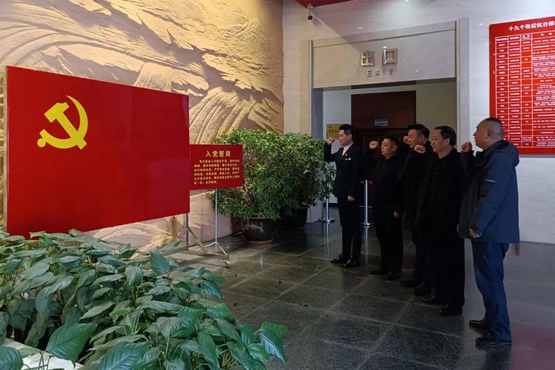 进入纪念馆,婚协一行人首先来到庄严的党旗前,举起右手,重温入党誓词!